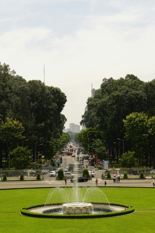 Dinh Độc Lập nhìn ra đường Lê Duẩn – một trong những con đường xưa nhất Sài Gòn thời Pháp thuộc còn tồn tại đến ngày nay. Ảnh: Thai Tong